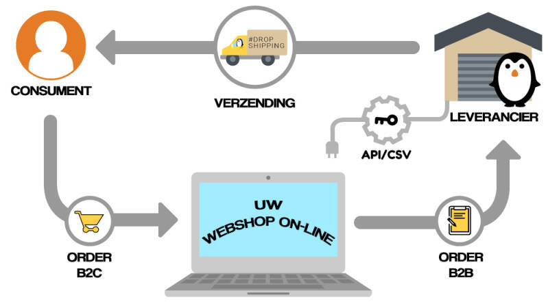 Bij dropshipping neem je de producten van je leverancier alleen op in jouw webshop en koop je deze niet direct in. Hierdoor houdt je zelf geen voorraden aan en scheelt het een hoop opslagkosten en tijd.